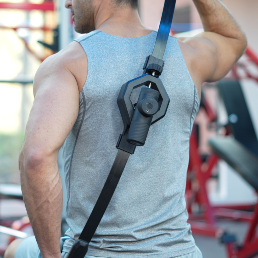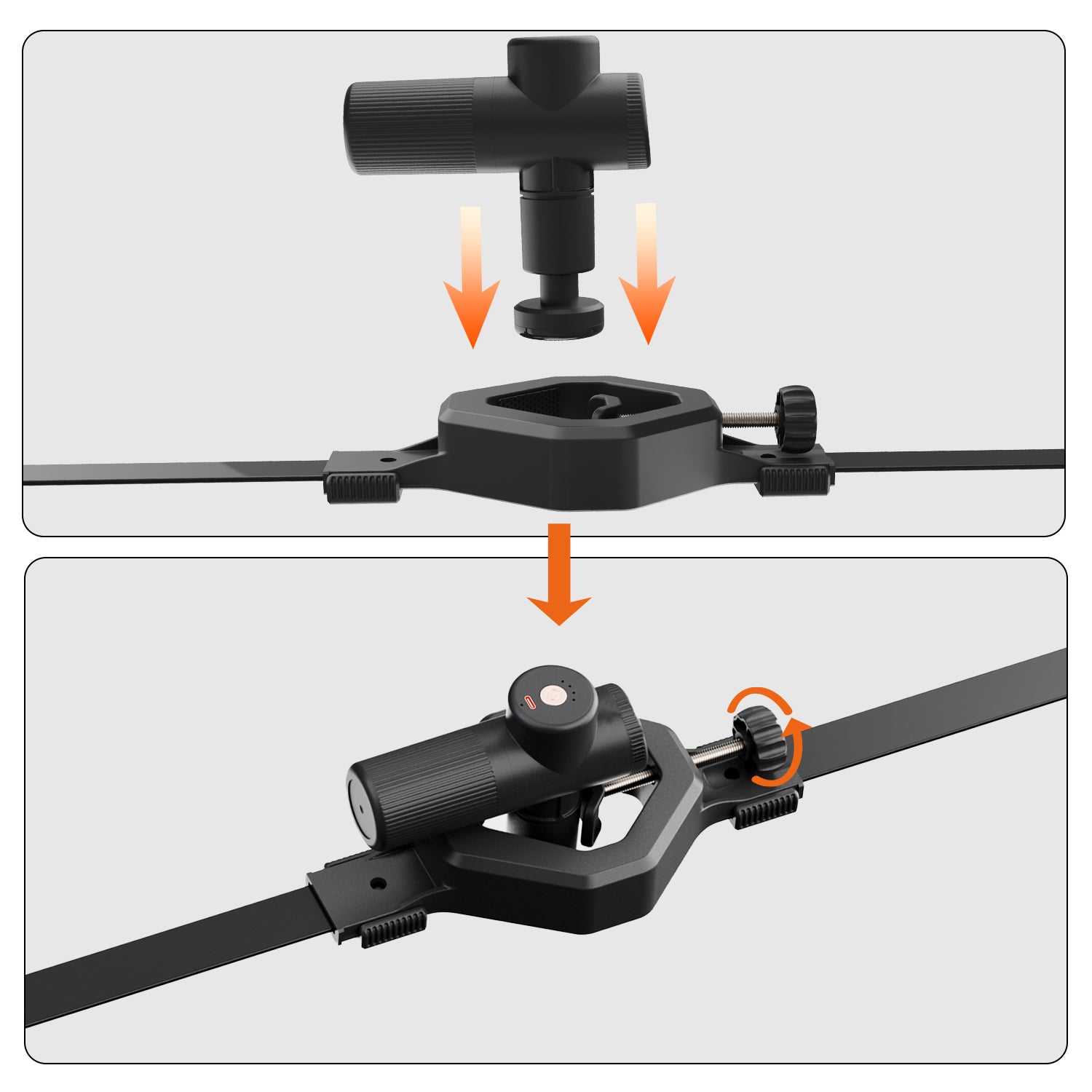 Just insert your massage gun into the holder, tighten the knob, and massage away