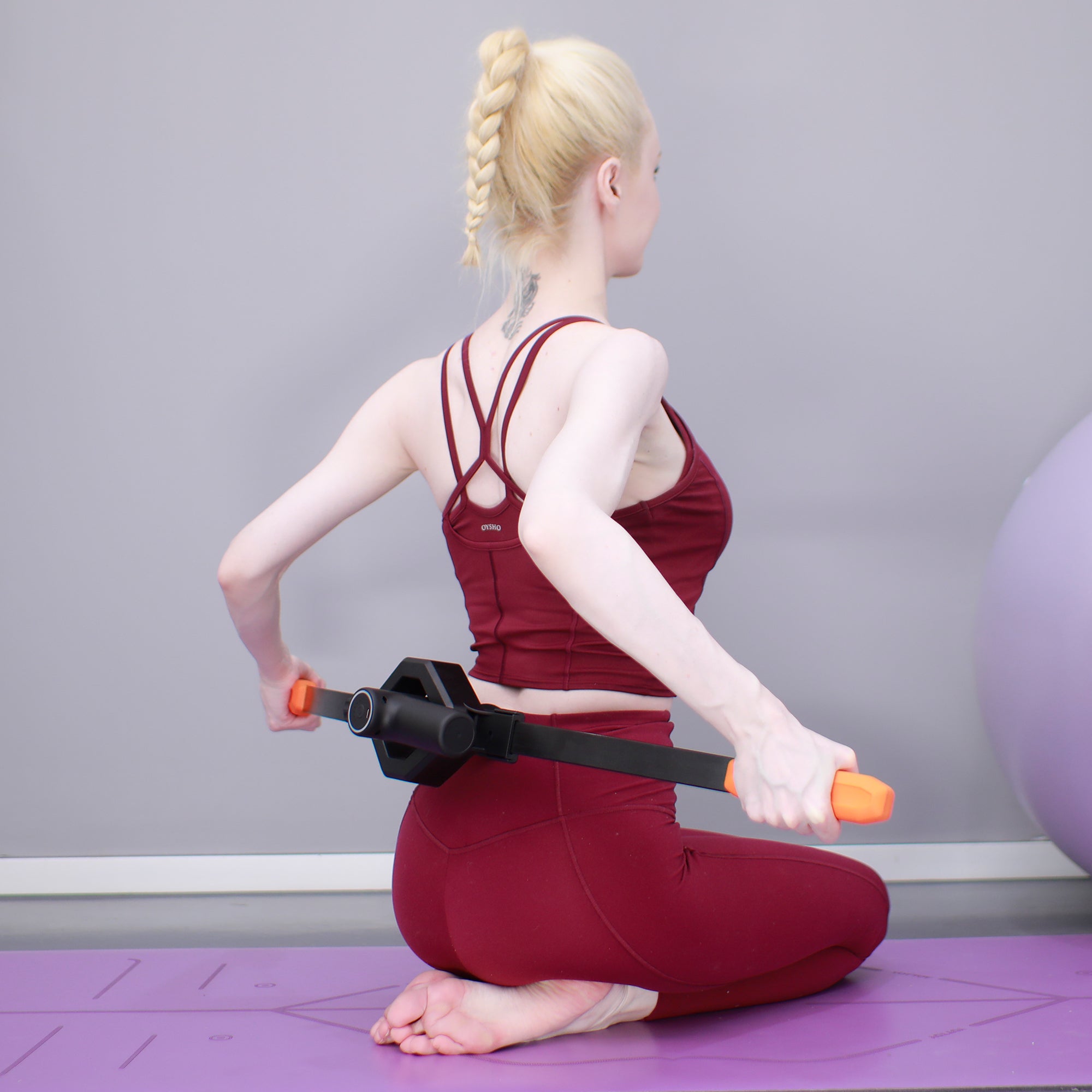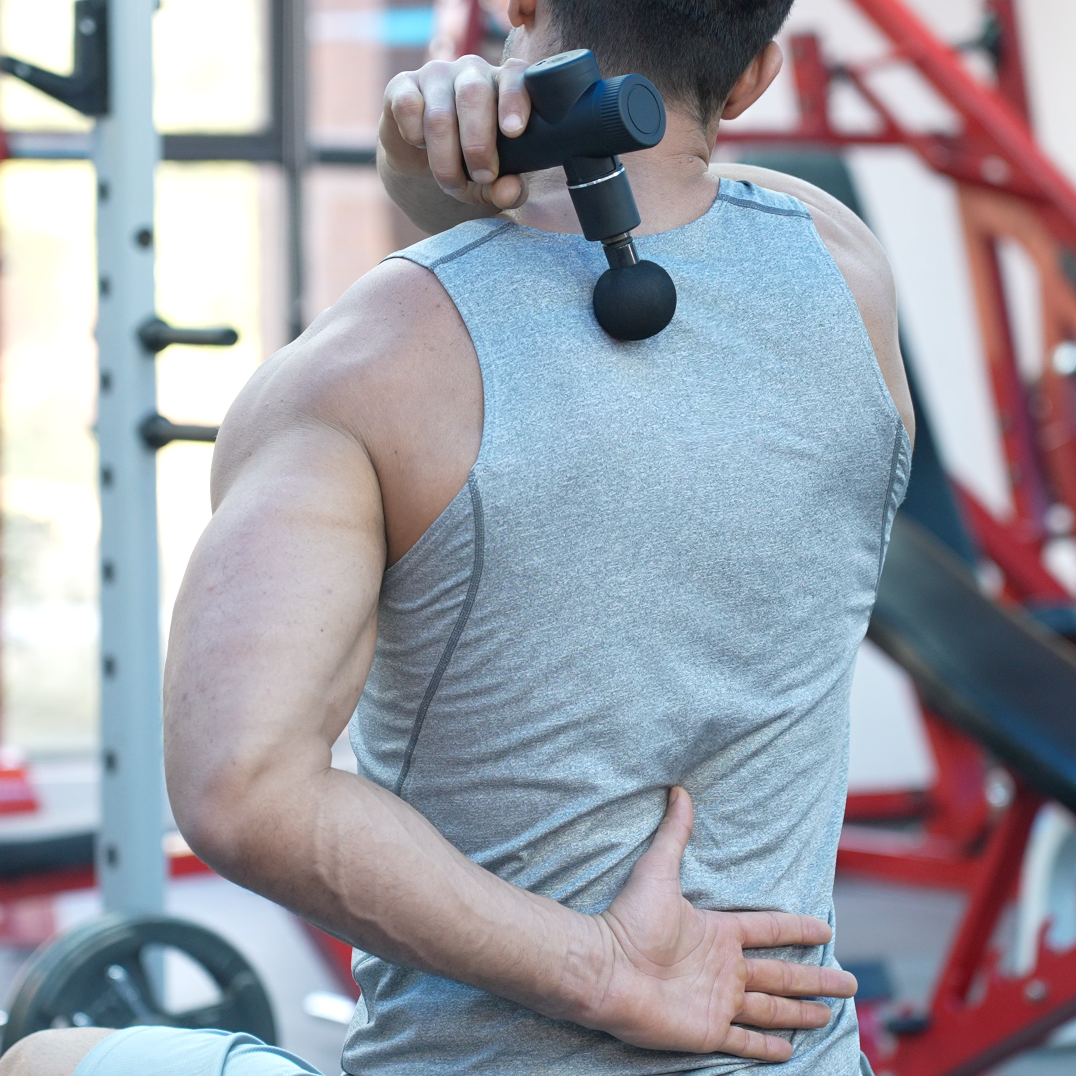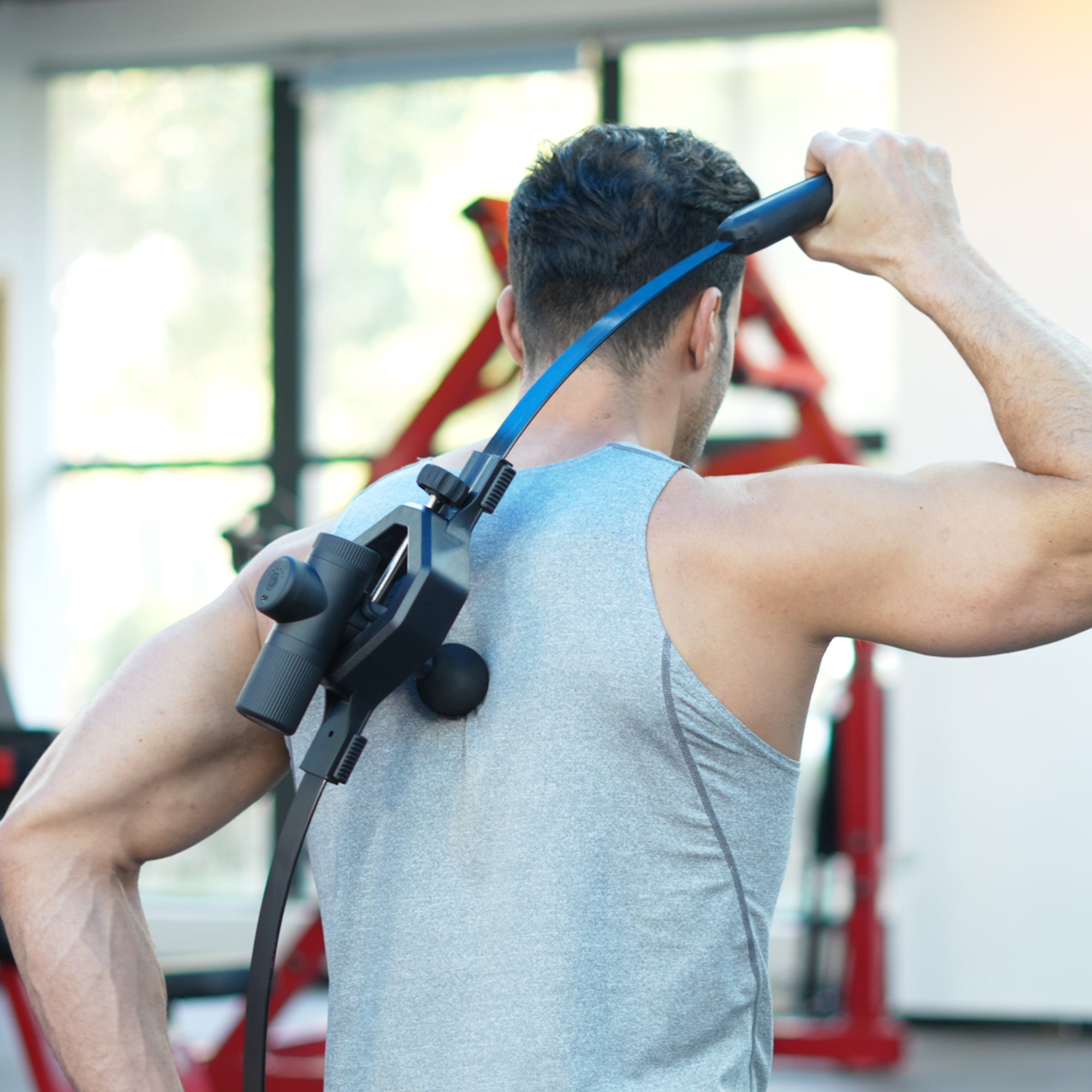 Just insert your massage gun into the holder, tighten the knob, and massage away